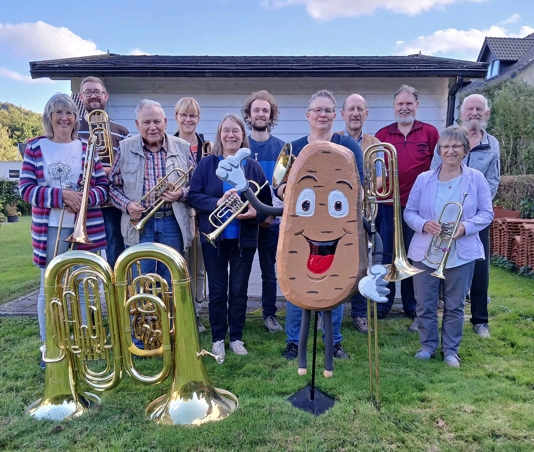 Die Bläserinnen und Bläser wollen in diesem Jahr nicht hinter Kirchenmauern spielen, sondern draußen. Hier möchten sie die viertwichtigste Kulturpflanze mit einem kleinen Kartoffel-Erntefest in Wort und Ton würdigen.