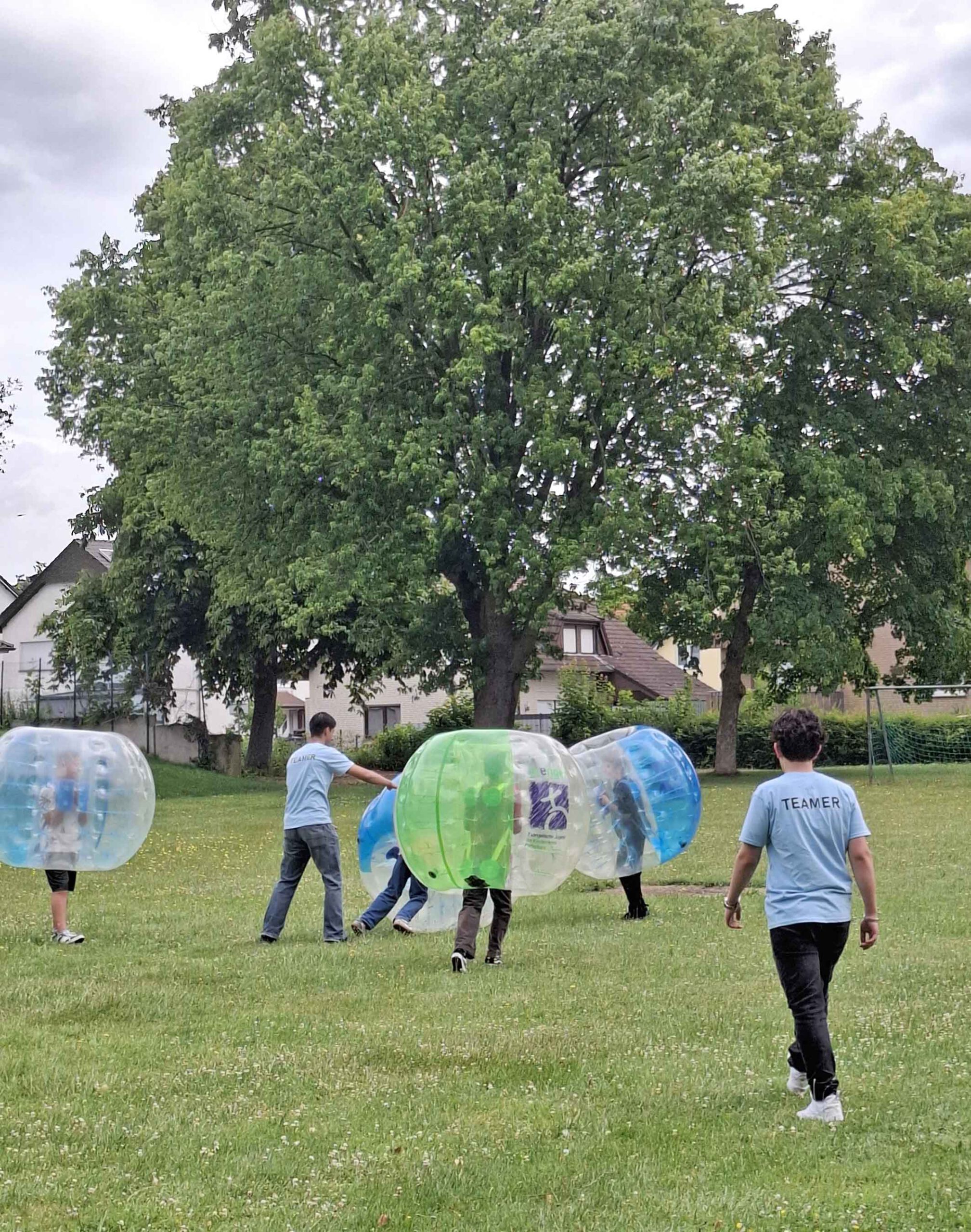 Bubble Soccer war eines der Angebote, das sich die Teamer überlegt hatten, und das kam bei ihren jüngeren Mitschülerinnen und Mitschülern besonders gut an.