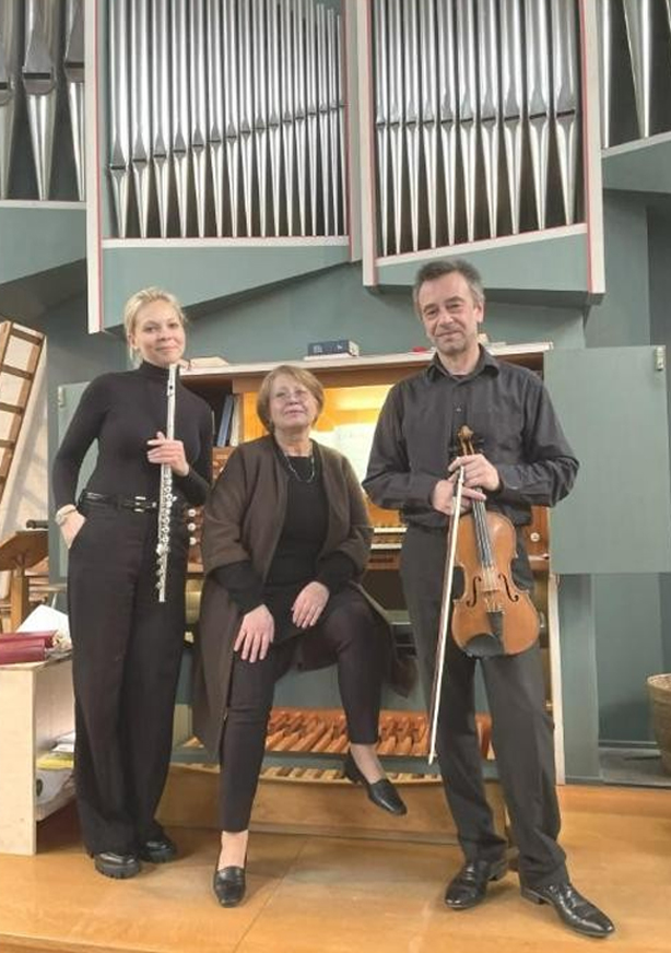 Neben zwei Sätzen aus Johann Sebastian Bachs Sonate Nr. 4 c-moll für Violine und Orgel wird vor allem sein aufwendig gestaltetes Doppelkonzert für Flöte (Oboe), Violine und Cembalo (Orgel) zu hören sein. Von dem 1956 in Hattingen geborenen Komponisten Günther Wiesemann wird ein meditatives Stück für Flöte und Klanginstrumente aufgeführt. Das Trio spielt in der Besetzung Maria Kostina, Flöte, Michael Nachbar, Violine und Schlaginstrumente sowie Tamara Buslova, Orgel und Schlaginstrumente.